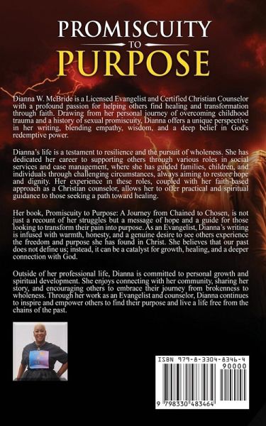 Every little girl has a dream. For some, it's about becoming a famous singer or a world-traveling adventurer. For others, it's about finding love and building a home, complete with a husband, kids, and that classic white picket fence. This story is about one such girl. She had big dreams, filled with love, laughter, and a bright future. But one moment-one single Saturday afternoon-changed everything. What she experienced that day wasn't part of the plan. It wasn't in her dreams or the story she had imagined for herself. It was a moment of pain that set her on a path she never expected. Her dreams of a perfect life were shattered, and her world turned upside down. But what if that moment, as devastating as it was, wasn't the end of her story? What if it was just the beginning? This book is about that journey-from a place of deep pain to a place of purpose. It's about how life's most challenging moments, the ones that threaten to break us, can be the very things that shape us into who we are meant to be. It's about finding strength in the midst of weakness and discovering that, even when it seems like all is lost, there is always a new path to be found. For this girl, the journey wasn't easy. It was filled with heartache, confusion, and countless questions. But along the way, she learned that the pain she felt didn't have to define her. Instead, it could refine her, leading her to a purpose greater than she could have ever imagined.This is her story-a story of transformation, resilience, and the power of choosing to rise above life's darkest moments. As you read her journey from being chained by her past to being chosen for something greater, I hope you find your own path to healing and purpose. Remember, no matter where you start, it's never too late to rewrite your story Promiscuity to Purpose: A Journey from Chained to Chosen is a story of profound transformation, a journey from the depths of darkness and despair to the heights of redemption and divine purpose. This book chronicles my odyssey through a life marked by promiscuity, addiction, and the haunting shadows of past abuse, to a place of healing, wholeness, and an unshakeable faith in Jesus Christ.For years, I was chained to a life that seemed devoid of hope, shackled by the wounds of my past and the choices I made in an attempt to numb the pain. I sought solace in temporary pleasures, only to sink deeper into a pit of shame and regret. However, it was in this darkness that light began to pierce through, a light that would lead me on a journey of self-discovery, healing, and ultimate transformation.This book is not just my story; it's a testament to the redeeming power of Jesus Christ. It's a message of hope for anyone who has ever felt unlovable, those who have been ensnared by the enemy's lies, and those searching for a way out of the labyrinth of pain and brokenness. It's an invitation to embark on a pilgrimage of the soul, a journey that requires the bold relinquishment of masks and the courageous excavation of buried wounds.In these pages, you will find an honest and unflinching account of my struggles and the miraculous ways God intervened in my life. You will witness the raw and painful process of shedding the chains of bondage and stepping into the light of divine purpose. Through the lens of my experiences, you will see the intricate tapestry of transformation that reveals the infinite depths of the human spirit and the boundless grace of God.