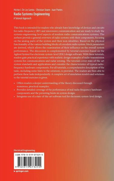 This book is intended for readers who already have knowledge of devices and circuits for radio-frequency (RF) and microwave communication and are ready to study the systems engineering-level aspects of modern radio communications systems. The authors provide a general overview of radio systems with their components, focusing on the analog parts of the system and their non-idealities. Based on the physical functionality of the various building blocks of a modern radio system, block parameters are derived, which allows the examination of their influence on the overall system performance. The discussion is complemented by tutorial exercises based on the Agilent SystemVue electronic system-level (ESL) design software. With these tutorials, readers gain practical experience with realistic design examples of radio transmission systems for communications and radar sensing. The tutorials cover state-of-the-art system standards and applications and consider the characteristics of typical radio-frequency hardware components. For all tutorials, a comprehensive description of the tasks, including some hints to the solutions, is provided. The readers are then able to perform these tasks independently. A complete set of simulation models and solutions to the tutorial exercises is given.