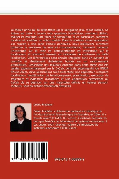 Le thème principal de cette thèse est la navigation d'un robot mobile. Ce thème est traité à travers trois questions fondatrices: comment définir, réaliser et implanter une tâche de navigation, et en particulier, comment localiser et contrôler un robot mobile. Dans le contexte d'une localisation par rapport à une carte d'amers ponctuels, nous expliquons comment optimiser le processus de mise en correspondance, comment convertir l'incertitude sur la mise en correspondance en incertitude sur la localisation, et comment mesurer un indicateur de confiance sur cette localisation. Ces info...