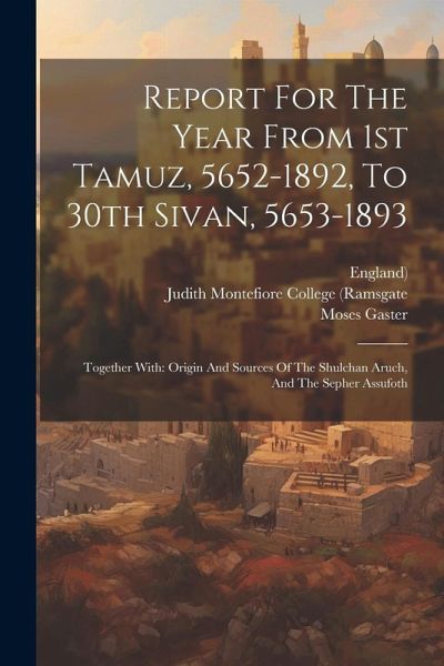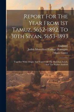 Report For The Year From 1st Tamuz, 5652-1892, To 30th Sivan, 5653-1893: Together With: Origin And Sources Of The Shulchan Aruch, And The Sepher Assuf