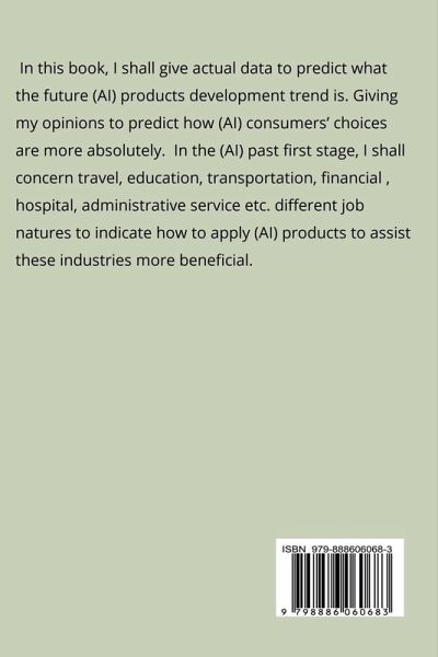 In this book, I shall give actual data to predict what the future (AI) products development trend is. Giving my opinions to predict how (AI) consumers' choices are more absolutely. In the (AI) past first stage, I shall concern travel, education, transportation, financial , hospital, administrative service etc. different job natures to indicate how to apply (AI) products to assist these industries more beneficial. In the (AI) nowadays second stage, I shall concentrate on how (AI) developing on education aspect. In the (AI) future third stage, I shall explain why (AI) will have possible to invent (AI) brain technology, even it will bring (AI) war occurence in possible.