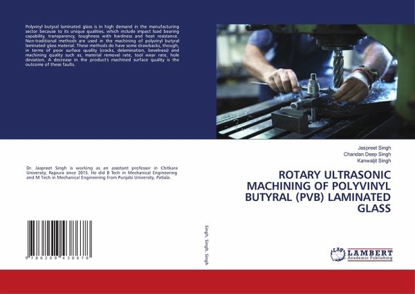 Polyvinyl butyral laminated glass is in high demand in the manufacturing sector because to its unique qualities, which include impact load bearing capability, transparency, toughness with hardness and heat resistance. Non-traditional methods are used in the machining of polyvinyl butyral laminated glass material. These methods do have some drawbacks, though, in terms of poor surface quality (cracks, delamination, bevelness) and machining quality such as, material removal rate, tool wear rate, hole deviation. A decrease in the product's machined surface quality is the outcome of these faults.
