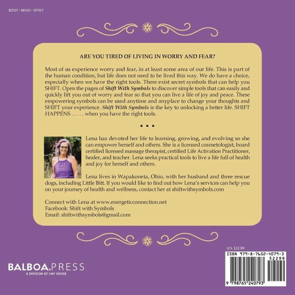 ARE YOU TIRED OF LIVING IN WORRY AND FEAR? Most of us experience worry and fear, in at least some area of our life. This is part of the human condition, but life does not need to be lived this way. We do have a choice, especially when we have the right tools. There exist secret symbols that can help you SHIFT. Open the pages of Shift With Symbols to discover simple tools that can easily and quickly lift you out of worry and fear so that you can live a life of joy and peace. These empowering symbols can be used anytime and anyplace to change your thoughts and SHIFT your experience. Shift With Symbols is the key to unlocking a better life. SHIFT HAPPENS . . . . . when you have the right tools.