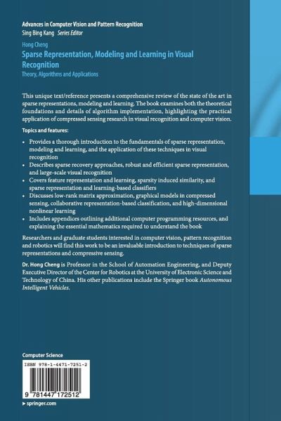 This unique text/reference presents a comprehensive review of the state of the art in sparse representations, modeling and learning. The book examines both the theoretical foundations and details of algorithm implementation, highlighting the practical application of compressed sensing research in visual recognition and computer vision. Topics and features: describes sparse recovery approaches, robust and efficient sparse representation, and large-scale visual recognition; covers feature representation and learning, sparsity induced similarity, and sparse representation and learning-based classifiers; discusses low-rank matrix approximation, graphical models in compressed sensing, collaborative representation-based classification, and high-dimensional nonlinear learning; includes appendices outlining additional computer programming resources, and explaining the essential mathematics required to understand the book.