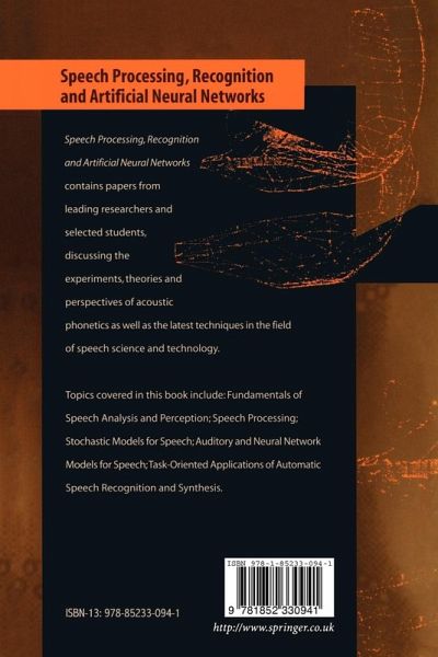 Speech Processing, Recognition and Artificial Neural Networks contains papers from leading researchers and selected students, discussing the experiments, theories and perspectives of acoustic phonetics as well as the latest techniques in the field of spe ech science and technology. Topics covered in this book include; Fundamentals of Speech Analysis and Perceptron; Speech Processing; Stochastic Models for Speech; Auditory and Neural Network Models for Speech; Task-Oriented Applications of Automatic Speech Recognition and Synthesis.
