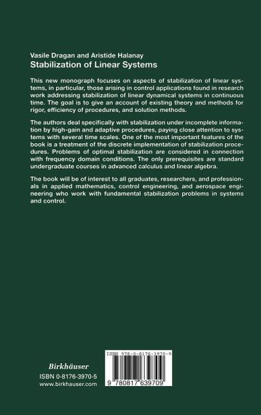 One of the main problems in control theory is the stabilization problem consisting of finding a feedback control law ensuring stability; when the linear approximation is considered, the nat ural problem is stabilization of a linear system by linear state feedback or by using a linear dynamic controller. This prob lem was intensively studied during the last decades and many important results have been obtained. The present monograph is based mainly on results obtained by the authors. It focuses on stabilization of systems with slow and fast motions, on stabilization procedures that use only poor information about the system (high-gain stabilization and adaptive stabilization), and also on discrete time implementa tion of the stabilizing procedures. These topics are important in many applications of stabilization theory. We hope that this monograph may illustrate the way in which mathematical theories do influence advanced technol ogy. This book is not intended to be a text book nor a guide for control-designers. In engineering practice, control-design is a very complex task in which stability is only one of the re quirements and many aspects and facets of the problem have to be taken into consideration. Even if we restrict ourselves to stabilization, the book does not provide just recipes, but it fo cuses more on the ideas lying behind the recipes. In short, this is not a book on control, but on some mathematics of control.
