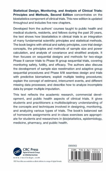 Statistical Design, Monitoring, and Analysis of Clinical Trials, Second Edition concentrates on the biostatistics component of clinical trials. This new edition is updated throughout and includes five new chapters.