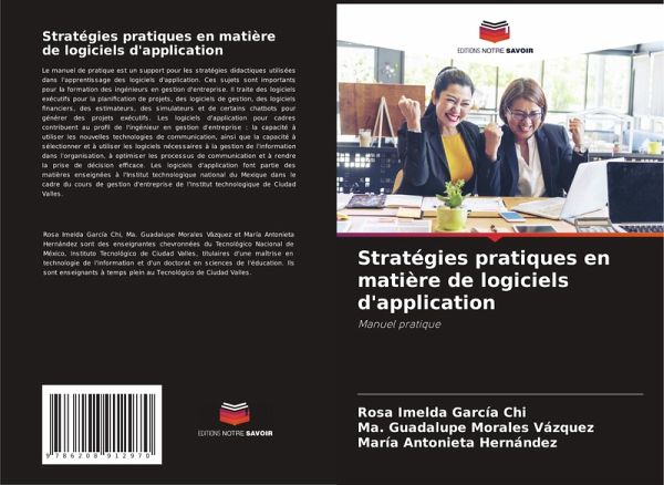 Le manuel de pratique est un support pour les stratégies didactiques utilisées dans l'apprentissage des logiciels d'application. Ces sujets sont importants pour la formation des ingénieurs en gestion d'entreprise. Il traite des logiciels exécutifs pour la planification de projets, des logiciels de gestion, des logiciels financiers, des estimateurs, des simulateurs et de certains chatbots pour générer des projets exécutifs. Les logiciels d'application pour cadres contribuent au profil de l'ingénieur en gestion d'entreprise : la capacité à utiliser les nouvelles technologies de communication, ainsi que la capacité à sélectionner et à utiliser les logiciels nécessaires à la gestion de l'information dans l'organisation, à optimiser les processus de communication et à rendre la prise de décision efficace. Les logiciels d'application font partie des matières enseignées à l'Institut technologique national du Mexique dans le cadre du cours de gestion d'entreprise de l'Institut technologique de Ciudad Valles.