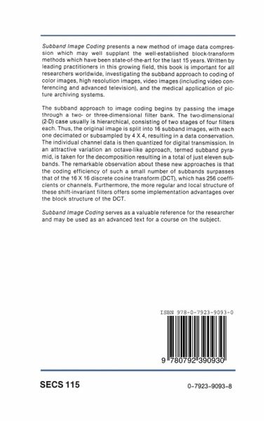 This book concerns a new method of image data compression which weil may supplant the well-established block-transfonn methods that have been state-of-the art for the last 15 years. Subband image coding or SBC was first perfonned as such in 1985, and as the results became known at first through conference proceedings, and later through journal papers, the research community became excited about both the theoretical and practical aspects of this new approach. This excitement is continuing today, with many major research laboratories and research universities around the world investigating the s...