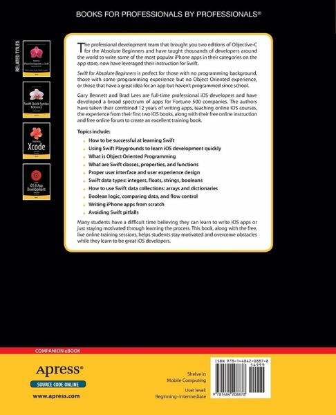 The professional development team that brought you two editions of Objective-C for the Absolute Beginners and have taught thousands of developers around the world to write some of the most popular iPhone apps in their categories on the app store, have now leveraged their instruction for Swift.