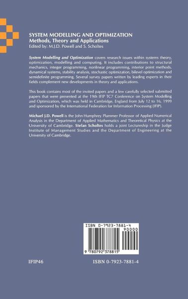 System Modelling and Optimization covers research issues within systems theory, optimization, modelling, and computing. It includes contributions to structural mechanics, integer programming, nonlinear programming, interior point methods, dynamical systems, stability analysis, stochastic optimization, bilevel optimization, and semidefinite programming. Several survey papers written by leading experts in their fields complement new developments in theory and applications.