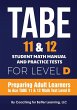 TABE 11 & 12 Math Student Book Level D This student manual is designed to successfully prepare adult students for the TABE 11 & 12 Level D math test and vocational training admission tests. In other words, this manual presents exercises that help adult education programs, Workforce programs, and their adult students meet the Workforce Innovation and Opportunity Act (WIOA) math expectations. It offers six (6) sections that cover all the TABE 11 & 12 and Math CCR standards and content for level D such as: ¿1) the number system ¿2) expressions and equations, ¿3) ratios and proportional relatio...