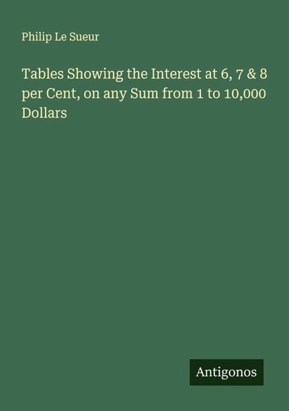 Tables Showing the Interest at 6, 7 & 8 per Cent, on any Sum from 1 to 10,000 Dollars