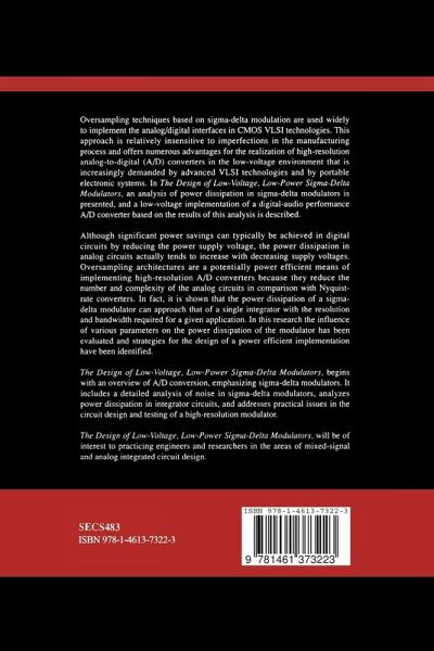 The Design of Low-Voltage, Low-Power Sigma-Delta Modulators begins with an overview of A/D conversion, emphasizing sigma-delta modulators. It includes a detailed analysis of noise in sigma-delta modulators, analyzes power dissipation in integrator circuits, and addresses practical issues in the circuit design and testing of a high-resolution modulator.