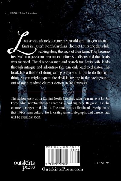 During the 1950s culture and society were changing in America. Most families still lived on small family farms where their hard work provided subsistence for them, but not much more than that. Many families simply could not escape their poor rural environment even when they had a strong desire to do so. During those years some young people were more aggressive and managed to move away from the rural poverty, but some could only dream and hope. They did not have the resources nor the knowledge of how the world really works to help them improve their lot. Perhaps rural Eastern North Carolina was even more disadvantaged than most of the rest of America. The Waters family represents a typical tenant farm family that worked hard but never improved their living conditions. Honesty, hard work and Christian ethics were the standards that rural families lived by in the era of the 1950s. Anyone who strayed outside those standards, were shunned by people who lived by the rural culture. Louise Waters wanted to escape her culture, but never understood what was required to do so. She simply decided what was best for her and she did that. She never understood that education provided the means to understand culture and economics. She dropped out of high school to make her way in life. Thus began her perceived quest for a better life, but in fact that began a spiraling toward disaster when she violated the principals and ethics of her culture. A torrid romance with a man she happened to meet by chance progressed through providing the means Louise needed to move to a better life to a disaster she could never imagine. The setting of the story is a tenant farm in Beaufort County, North Carolina. Throughout the story, the reader is positioned to evaluate what is right and what is wrong in the actions of the characters, especially decisions that Louise made. A historical event that occurred in 1802 near Bath, North Carolina ended in the death of a rider in a race when his horse threw him