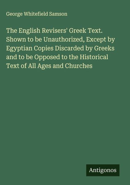 The English Revisers' Greek Text. Shown to be Unauthorized, Except by Egyptian Copies Discarded by Greeks and to be Opposed to the Historical Text of All Ages and Churches