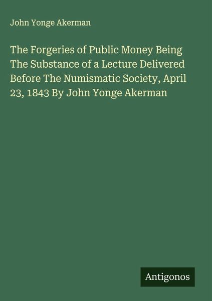 The Forgeries of Public Money Being The Substance of a Lecture Delivered Before The Numismatic Society, April 23, 1843 By John Yonge Akerman