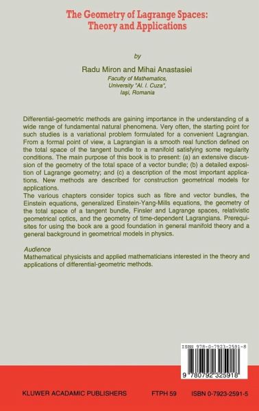 Differential-geometric methods are gaining increasing importance in the understanding of a wide range of fundamental natural phenomena. Very often, the starting point for such studies is a variational problem formulated for a convenient Lagrangian. From a formal point of view, a Lagrangian is a smooth real function defined on the total space of the tangent bundle to a manifold satisfying some regularity conditions. The main purpose of this book is to present: (a) an extensive discussion of the geometry of the total space of a vector bundle; (b) a detailed exposition of Lagrange geometry; and (c) a description of the most important applications. New methods are described for construction geometrical models for applications.