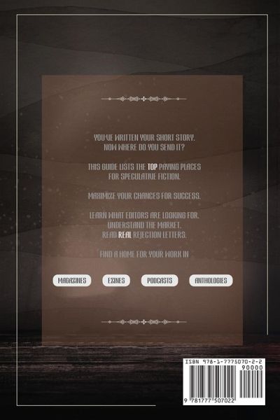 Are you trying to sell short stories to the speculative fiction market? This Guide has the INSIDE SCOOP on paying magazines, ezines and podcasts. Featuring more than 65 PAYING markets. Learn what editors are buying, and what they're looking for. How long will it take them to get back to you? Which editors give helpful advice? Understand the market. Read REAL rejection letters.