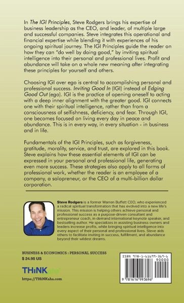 IGI (pronounced "iggy") Is about living in IGI: Inviting God/Good In Rather than EGO: Edging God/Good Out Many entrepreneurs and business leaders today are seeking to bring a deeper Spiritual Intelligence and a greater consciousness into their business so as to benefit not just themselves and their customers, but the world as a whole. We all desire to do work in the world that is successful, profitable, and guided and informed by our deepest values. However, it can be challenging for ambitious, action-oriented business leaders to balance maximizing profits while also nurturing their deeper purpose. In The IGI Principles, Steve Rodgers brings his expertise on business leadership as the CEO and leader of multiple large, successful companies as well as the experiences of his own spiritual journey to guide the reader on how they can "do well by doing good" and invite a true Spiritual Intelligence into their personal and professional lives. Central to accomplishing this is the concept of choosing IGI over ego - Inviting Good In instead of Edging Good Out. This is the practice of opening oneself up to taking action from a place of deep inner alignment with the greater good and with their Spiritual Intelligence rather than from a strictly materially focused consciousness. Learning the IGI principles and remembering to stay in their own state of IGI, is a practice that all individuals can engage in - whether they be solo entrepreneurs, business leaders, employees, or anyone seeking deeper fulfillment. Making small changes in one's inner orientation will have a powerful and deep effect on their entrepreneurial success as well as personal fulfillment. By inviting God and goodness into one's business endeavors, space is provided for everyone - whether they be employees, clients, or customers - to experience great creativity, harmony, and success. This book shares essential elements of the IGI formula such as forgiveness, gratitude, morality, service, and trust. It explains how they can be expressed in your personal and professional life and why they are essential for success. It also explores how simple practices such as accountability tracking, breath, prayer, and meditation can be utilized within a business setting to increase happiness and productivity of everyone in the organization and help a business find and stay aligned with its deepest purpose as well as continue to drive ever-increasing profits. These principles and strategies apply to all forms of professional work, whether the individual is a solopreneur, the CEO of a multi-million dollar company, or an employee in a company of any size. Essentially, these are universal principles and truths that are for anyone looking to better themselves and find harmony and balance in their inner and outer worlds. The reader will also learn about the trackable and measurable daily 4 pillars of Body, Bonds, Being, & Business; and how they can become healthy and abundant in all of them so as to achieve their highest good in business and in life. He helps the reader understand that spiritual principles and a deeper consciousness are essential to evolving to one's highest good in business and in life, and he masterfully guides the reader on just how to accomplish this in their own life path. This is accomplished not just through the traditional book format, but also with bonus elements in each chapter containing detailed videos and social media-ready content to help greater spread positivity in the world!