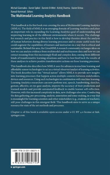 This handbook is the first book ever covering the area of Multimodal Learning Analytics (MMLA). The field of MMLA is an emerging domain of Learning Analytics and plays an important role in expanding the Learning Analytics goal of understanding and improving learning in all the different environments where it occurs. The challenge for research and practice in this field is how to develop theories about the analysis of human behaviors during diverse learning processes and to create useful tools that could augment the capabilities of learners and instructors in a way that is ethical and sustainab...