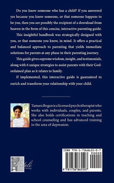 Do you know someone who has a child? If you answered yes because you know someone, or that someone happens to be you, then you are possibly the recipient of a download from heaven in the form of this concise, interactive parenting guide. This insightful handbook was strategically designed with you, or that someone you know, in mind. It offers a practical and balanced approach to parenting that yields immediate solutions for parents at any phase in their parenting journey. This guide gives supreme wisdom, insight, and testimonials, along with 6 unique strategies to assist parents with their God-ordained plan as it relates to family. If implemented, this interactive guide is guaranteed to enrich and transform your relationship with your child.