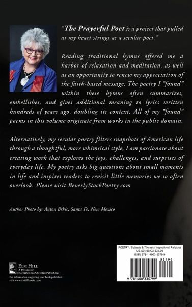 Beverly Stock is a feature writer turned poet from St. Louis, Missouri. Noted for her whimsical, thoughtful style, Beverly is passionate about creating work that explores the joys, challenges, and surprises of everyday life. The Prayerful Poet is her first collection of verse. Brimming with joy, wonder, and tenderness, this stirring volume takes inspiration from traditional Christian hymns and classic spiritual works. Each poem combines Beverly's poetic adaptations with the time-honored hymnal lyrics and finds fresh meaning in traditional songs of praise. A mixture of grand voices and elegiac laments, The Prayerful Poet engages readers with its hopeful perspective, and is a perfect read for anyone who finds beauty in the divine.