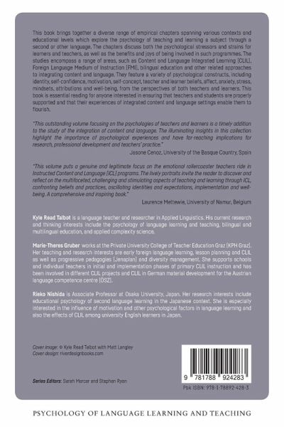 This book explores the psychology of teaching and learning a subject through a second or other language. It highlights the challenges and benefits of teaching and learning in integrated content and language settings and covers themes such as identity, self-concept, cognition, beliefs, well-being, interventions and professional development.