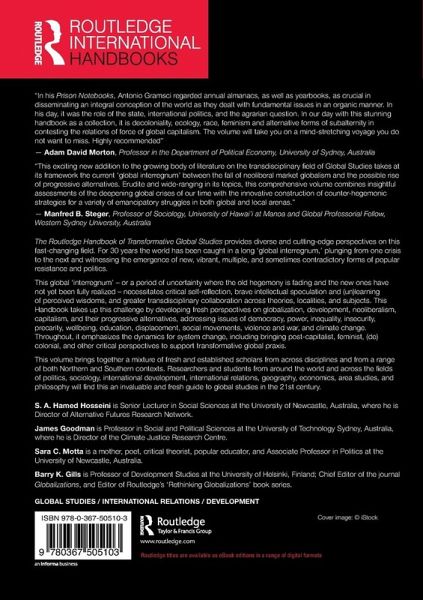The Routledge Handbook of Transformative Global Studies provides diverse and cutting-edge perspectives on this fast-changing field. For 30 years the world has been caught in a long 'global interregnum,' plunging from one crisis to the next and witnessing the emergence of new, vibrant, multiple, and sometimes contradictory forms of popular resistance and politics.