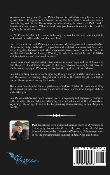 When he was nine years old, Paul Polson lay on his bed in his family home, burning up with fever. He experienced a "vision" during that fever that repeated itself several times throughout his life. The message was clear during the vision, but Paul couldn't describe it when he woke. What it did do was give him confidence that he could do anything he wanted and succeed. In The Vision, he shares his story: A lifelong passion for the arts and a quest to understand himself and the world around him. Born in Laramie in 1948, Polson grew up in small Wyoming towns. He moved to San Diego in the early 19...