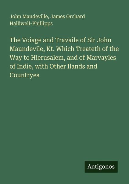 The Voiage and Travaile of Sir John Maundevile, Kt. Which Treateth of the Way to Hierusalem, and of Marvayles of Indie, with Other Ilands and Countryes