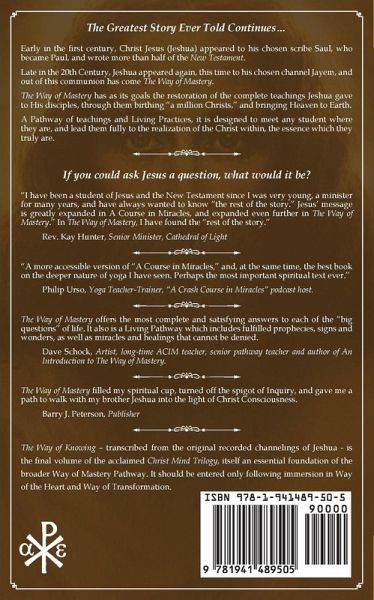 Now available in a 4.37x7" Pocket sized editon for when those times the full size editon is too big. Contains all lessons from Volume III ‘The Way of Knowing’ is a collection of Jeshua’s teachings, faithfully transcribed from the original channeled audio recordings. It forms the third volume of the five essential ‘Way of Mastery’ texts. Jeshua shares: "The Way of the Heart... is that pathway that begins with a commitment to healing and awakening, and is founded on the premise that you are perfectly free at all times. And everything that is experienced has been by your choice. And at no time has there been any other cause." His invitation to us is to wake up from every illusion that we have ever been separate from God, and to remember the deepest Truth of who we are: Christ. This is the only authorized version, precisely it was first given and including the original question and answer sections. Nothing has been added in the transition from audio to text: no chapter titles appear, nor themes given to sub-sections - for He gave none.