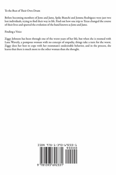To the Beat of Their Own Drum Before becoming members of Jems and Jamz, Spike Bianchi and Jemma Rodriguez were just two lost individuals, trying to find their way in life. Find out how one trip to Texas changed the course of their lives and spurred the evolution of the band known as Jems and Jamz. Finding a Voice Ziggy Johnson has been through one of the worst years of her life, but when she is roomed with Lana Waverly, a pompous woman with no concept of empathy, things take a turn for the worst. Ziggy does her best to cope with her roommate's undesirable behavior, and in the process, she lear...