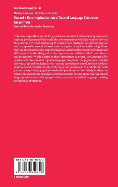 This book responds to the call for praxis in L2 education by documenting recent and ongoing projects around the world that see partnership with classroom teachers as the essential driver for continuing to develop both classroom assessment practice and conceptual frameworks of assessment in support of teaching and learning. Taken together, these partnerships shape the language assessment literacy, the knowledge and skills required for theorizing and conducting assessment activities, of both practitioners and researchers. While united by their orientation to praxis, the chapters offer considerable diversity with regard to languages taught, learner populations included (varying in age and proficiency level), specific innovations covered, research methods employed, and countries in which the work was conducted. As a whole, the book presents a way of engaging in research with practitioners that is likely to stimulate interest among not only language assessment scholars butalso those studying second language education and language teacher education as well as language teaching professionals themselves.