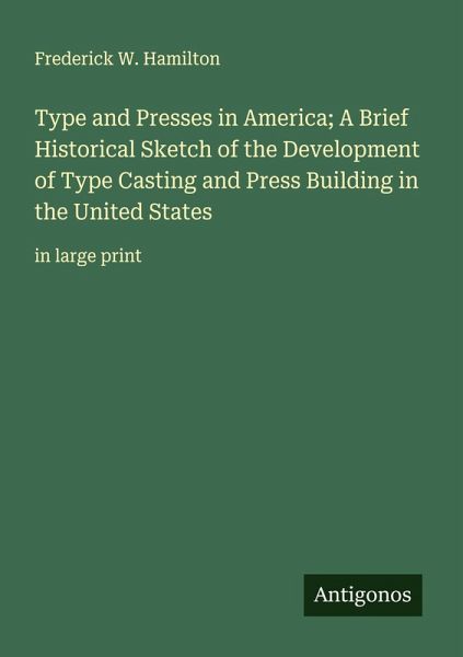 Type and Presses in America; A Brief Historical Sketch of the Development of Type Casting and Press Building in the United States
