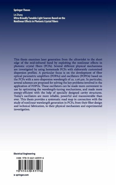 This thesis examines laser generation from the ultraviolet to the short edge of the mid-infrared band by exploiting the nonlinear effects in photonic crystal fibers (PCFs). Several different physical mechanisms are investigated by using homemade PCFs with elaborately customized dispersion profiles. A particular focus is on the development of fiber optical parametric amplifiers (FOPAs) and oscillators (FOPOs) based on the PCFs with a zero-dispersion wavelength of ca.1.06 mim. In particular, several schemes are proposed for solving the key problems involved in the application of FOPOs. These osc...