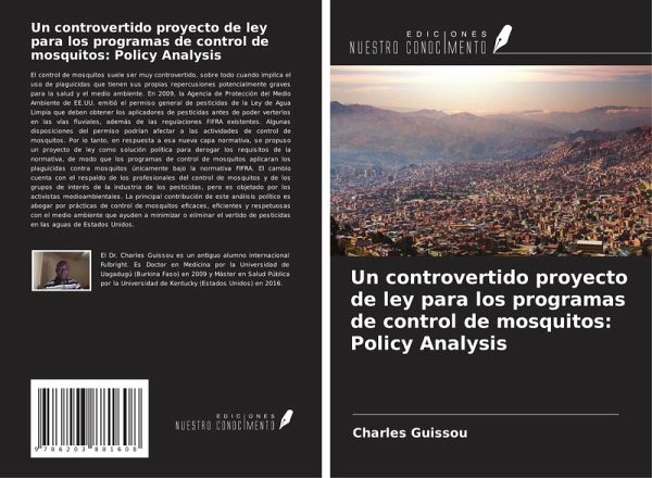 El control de mosquitos suele ser muy controvertido, sobre todo cuando implica el uso de plaguicidas que tienen sus propias repercusiones potencialmente graves para la salud y el medio ambiente. En 2009, la Agencia de Protección del Medio Ambiente de EE.UU. emitió el permiso general de pesticidas de la Ley de Agua Limpia que deben obtener los aplicadores de pesticidas antes de poder verterlos en las vías fluviales, además de las regulaciones FIFRA existentes. Algunas disposiciones del permiso podrían afectar a las actividades de control de mosquitos. Por lo tanto, en respuesta a esa nueva capa normativa, se propuso un proyecto de ley como solución política para derogar los requisitos de la normativa, de modo que los programas de control de mosquitos aplicaran los plaguicidas contra mosquitos únicamente bajo la normativa FIFRA. El cambio cuenta con el respaldo de los profesionales del control de mosquitos y de los grupos de interés de la industria de los pesticidas, pero es objetado por los activistas medioambientales. La principal contribución de este análisis político es abogar por prácticas de control de mosquitos eficaces, eficientes y respetuosas con el medio ambiente que ayuden a minimizar o eliminar el vertido de pesticidas en las aguas de Estados Unidos.