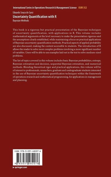 This book is a rigorous but practical presentation of the Bayesian techniques of uncertainty quantification, with applications in R. This volume includes mathematical arguments at the level necessary to make the presentation rigorous and the assumptions clearly established, while maintaining a focus on practical applications of Bayesian uncertainty quantification methods. Practical aspects of applied probability are also discussed, making the content accessible to students. The introduction of R allows the reader to solve more complex problems involving a more significant number of variables. Users will be able to use examples laid out in the text to solve medium-sized problems.