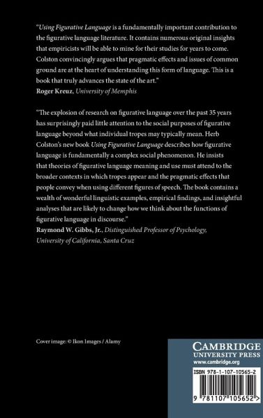 Using Figurative Language presents results from a multidisciplinary decades-long study of figurative language that addresses the question, 'Why don't people just say what they mean?' This research empirically investigates goals speakers or writers have when speaking (writing) figuratively, and concomitantly, meaning effects wrought by figurative language usage. These 'pragmatic effects' arise from many kinds of figurative language including metaphors (e.g. 'This computer is a dinosaur'), verbal irony (e.g. 'Nice place you got here'), idioms (e.g. 'Bite the bullet'), proverbs (e.g. 'Don't put a...
