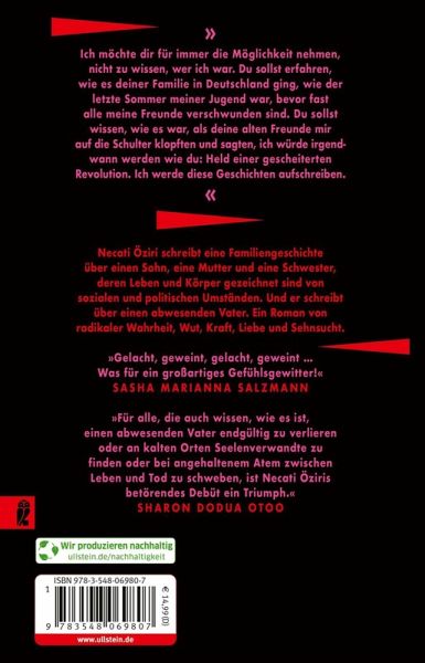 »Für alle, die auch wissen, wie es ist, einen abwesenden Vater endgültig zu verlieren oder an kalten Orten Seelenverwandte zu finden oder bei angehaltenem Atem zwischen Leben und Tod zu schweben, ist Necati Öziris betörendes Debüt ein Triumph.« Sharon Dodua Otoo