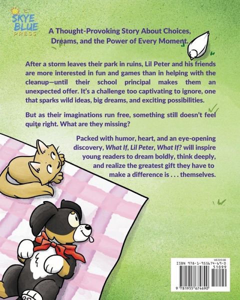 A Thought-Provoking Story About Choices, Dreams, and the Power of Every Moment. After a storm leaves their park in ruins, Lil Peter and his friends are more interested in fun and games than in helping with the cleanup-until their school principal makes them an unexpected offer. It's a challenge too captivating to ignore, one that sparks wild ideas, big dreams, and exciting possibilities. But as their imaginations run free, something still doesn't feel quite right. What are they missing? Packed with humor, heart, and an eye-opening discovery, What If, Lil Peter, What If? will inspire young readers to dream boldly, think deeply, and realize the greatest gift they have to make a difference is... themselves. Perfect for kids ages 3-10, parents, and educators looking for a meaningful story with an empowering message. This book invites young minds to dream big, think deeper, and discover the magic hidden in everyday moments.