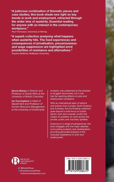 Austerity was presented as the antidote to sluggish economies, but it has had far-reaching effects on jobs and employment conditions. With an international team of editors and authors from Europe, North America and Australia this illuminating collection goes beyond a sole focus on public sector work and uniquely covers the impact of austerity on work across the private, public and voluntary spheres. Drawing on a range of perspectives, the book engages with the major debates surrounding austerity and neoliberalism, providing grounded analysis of the everyday experience of work and employment.