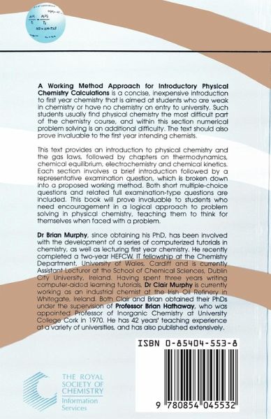 This text provides an introduction to physical chemistry and the gas laws, followed by chapters on thermodynamics, chemical equilibrium, electrochemistry and chemical kinetics.