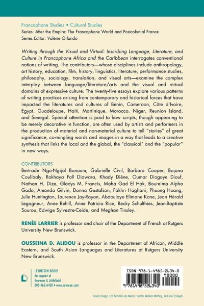Introduction:Traditions of Literacy by Renée Larrier andOusseina D. Alidou Part I: Visual and Verbal Artistry: Texts and Text[iles] as Epistemology Chapter 1: Embodying African Women’s Epistemology: International Women’s Day Pagnes in Cameroon; Bertrade Ngo-Ngijol Banoum and Anne Patricia Rice Chapter 2: Reading the Téra-tera: Textiles, Transportation, and Nationalism in Niger’s First Republic; Amanda Gilvin Chapter 3: Becoming Griot: Righting Within a Minor Literature; Oumar Diogoye Diouf Chapter 4: Research on Droughts and Famines in the Sahel: the Contribution of Oral Literature; Boureima Alpha Gado Part II: Body Language/Writing [on] the Body Chapter 5: Transgressive Embodied Writings of KAribbean Bodies in Pain; Gladys Francis Chapter 6: Alhaji Roaming the City: Gender, HIV-AIDS and the Performing Arts; Ousseina D. Alidou Chapter 7: Writing on the Visual: Lalla Essaydi’s Photographic Tableaux; Donna Gustafson Chapter 8: Angles of Representation: Photography and the Vision of al Misriyya [the Egyptian] in Women’s Press of the Early Twentieth Century; Fakhri Haghani Part III: Inscribing Popular Culture Chapter 9: Representing Adolescent Sexuality in the Sahel; Barbara Cooper Chapter 10: There's More Than One Way to Make a Ceebu-Jën: Narrating West African Recipes in Texts; Julie Huntington Chapter 11: Reclamation of the Arena: Traditional Wrestling in West Africa; Bojana Coulibaly Chapter 12: Ritual Celebrations: Context of the Development of New African Hybrid Cultures; Jean-Baptiste Sourou Chapter 13: Simmering Exile; Edwidge Sylvestre-Ceide Part IV: Language, Literacy, and Education Chapter 14: Writing,Learning and Teaching Material for Early Childhood Cultures: from Africa to a Global Context; Rokhaya Fall Diawara Chapter 15: Orthographic Diversity in a World of Standards: Graphic Representations of Vernacular Arabics in Morocco; Becky Schulthies Chapter 16: The Polyphonous Classroom: Discourse on Language-in-Education on Reunion Island; Meghan Tinsley Chapter 17: Thundering Poetics/Murmuring Poetics: Doing Things With Words as a Marker of Identity; Laurence Jay-Rayon Part V: Intersections of Text and Image Chapter 18: Wilson Bigaud’s "Les Noces de Cana" [The Wedding at Cana]or the Meeting of Colonial Heritage and Ancestral Traditions in Haitian Naive Art; Jean Hérald Legagneur Chapter 19: Tourist Art: A Tracery of the Visual/Virtual;Gabrielle Civil. Images by Vladimir Cybil Charlier Chapter 20: Religious Iconography in the Daily Life of the Senegalese; Abdoulaye Elimane Kane Chapter21:West African Culture in Animation: the Example of "Kirikou"; Maha Gad El Hak Part VI: Literature, Gender, and Identity Chapter 22: Power and Patriarchy: Sexual Violence and Sexual Exploitation in the Francophone and Hispanophone Caribbean Represented in Marie Vieux-Chauvet’s Amour, colère et folie, Simone Schwarz-Bart’s Pluie et vent sur Télumée Miracle, Rosario Ferré’s "La Bella Durmiente," and Nelly Rosario’s El canto del agua;Phuong Hoang Chapter 23: La Mulâtresse During the Two World Wars: Race, Gender, and Sexuality in Suzanne Lacascade’s Claire-Solange, âme-africaine and Mayotte Capécia’s Je suis Martiniquaise; Nathan H. Dize Chapter 24: Inscriptions of Nature from Guadeloupe, Haiti, and Martinique; Anne Rehill Chapter 25: The Politics of Writing As a Space to Shape Identity(ies); Khady Diène