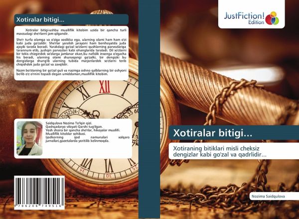 Xotiralar bitigi-ushbu mualliflik kitobim uzida bir qancha turli mavzudagi she'rlarni jam qilgandir. She'r turfa olamga va o'ziga xoslikka ega, ularning olami ham ham o'zi kabi juda go'zaldir. She'rlar yaralish jarayoni ham benihoyatda juda ajoyib tarzda boradi. Yurakdagi go'zal so'zlarni qushlarning parvozlariga tarannum etib, jushqin parvozlari kabi ohanglarida taraladi. Dil so'zlarni bir tekis chizgindek so'zlarga jamlanar ekan,bu nafislik insonga o'zgacha his beradi, ularning olami shunaqangi go'zalki, bir dengizki bu dengizlarga shung'ib ularning tubida marjonlardek so'zlarni terib chiqishdek juda go'zal va zavqlidir.Nazm bo'stoning bir go'zal guli va nazmga oshno qalblarning bir oshyoni bo'lib o'z o'rnini topadi degan umiddaman,mualliflik kitobim.