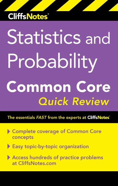 A quick in, quick out review of Statistics and Probability Common Core math Relevant to high school students needing to review the Statistics and Probability component of the Common Core math standards, this quick review provides targeted chapter-level reviews of topics aligned to the Statistics and Probability Common Core math standards, with practice problems throughout each review chapter and chapter-end quizzes. This quick review is supplemented with 300+ multiple-choice questions available on CliffsNotes.com.