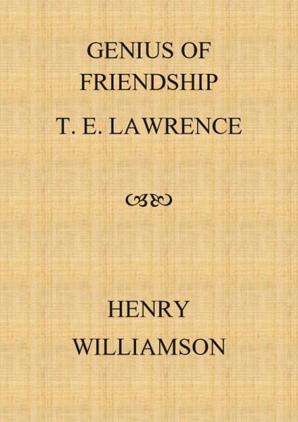 'Genius of Friendship', long out of print, is a memoir by Henry Williamson recounting his friendship with T. E. Lawrence - 'Lawrence of Arabia'. This was a friendship through correspondence, for the two men actually met only twice. It had its beginning in a long letter critiquing Williamson's Hawthornden Prize-winning book 'Tarka the Otter' that Lawrence sent to Edward Garnett from India early in 1928, and which Garnett then forwarded to Williamson. The memoir quotes extensively from Lawrence's letters to Williamson, which are both literary and personal in content, and make for fascinating reading. They continue up to Lawrence's death in 1935; indeed, Lawrence's last act, before his fatal motorcycle accident, was to send a telegram to Williamson arranging a meeting; he crashed while returning from the post office. The telegram is reproduced as a frontispiece to the book.