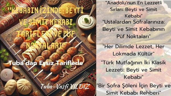 "Evde Beyti ve Simit Kebabi Yapimi" - Türk Mutfaginin Klasik Lezzetlerini Sofraniza TasiyinBu kitap, Türk mutfaginin önde gelen lezzetlerinden beyti ve simit kebabini tüm detaylariyla ögrenmek isteyenler için kapsamli bir rehber sunuyor. Gelenekten günümüze tasinan tariflerle, beyti ve simit kebabinin kökenlerinden malzeme seçimlerine, dogru pisirme tekniklerinden sunum önerilerine kadar her ayrintiyi kesfedin.Kitapta bulabileceginiz bölümler:Beyti ve Simit Kebabinin TarihçesiKlasik ve Farkli Pisirme TeknikleriYaninda Sunulabilecek Mezeler ve Eslik Eden LezzetlerGeleneksel Sunum...