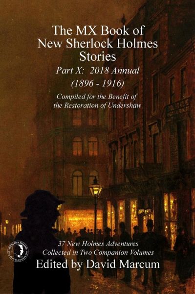 Part X: 2018 Annual (1896-1916) features contributions by: Mike Hogan, Kelvin Jones, Jim French, Arthur Hall, Steve Ehrman, Greg Hatcher, Jayantika Ganguly, Paul Freeman, Dick Gillman, Maurice Barkley, Daniel D. Victor, Martin Rosenstock, Peter Coe Verbica, Hugh Ashton, Will Murray, Robert Perret, Thaddeus Tuffentsamer, G.L. Schulze, Tim Symonds, and a poem by Derrick Belanger... and Forewords in both volumes by Nicholas Meyer, Roger Johnson, and David Marcum.Once again, the adventures of Sherlock Holmes and Dr. Watson continue in this acclaimed anthology series, with thirty-seven new tales presented in two companion volumes - more Holmes than could fit into one book!In 2015, The MX Book of New Sherlock Holmes Stories was first published, a huge three-book set featuring over sixty new traditional Holmes exploits, all set within the correct time period. Soon, the demand for even more traditional Holmes adventures led to further volumes. The next year brought Part IV: 2016 Annual, and then Part V: Christmas Adventures. In spring 2017 there was Part VI: 2017 Annual, and that fall revealed the massive two-volume set, Parts VII and VIII: Eliminate the Impossible. Now we present another two simultaneous volumes, Parts IX and X: 2018 Annual (1879-1895) and (1896-1916).There can be no argument that Sherlock Holmes is one of the most famous and recognizable figures in the world. There were only sixty narratives brought to us by the original Literary Agent, Sir Arthur Conan Doyle. Clearly that is not enough. Watson once wrote that he kept his unpublished cases in his old Tin Dispatch Box. Now, with the publication of these latest volumes, that box has again been explored by some of today's best Sherlockian writers, all of whom are donating their royalties from these anthologies toward the restoration of Undershaw, one of Sir Arthur Conan Doyle's houses, and the location where The Hound of the Baskervilles and many later Holmes stories were completed.Climb the seventeen steps to the sitting room at 221b Baker Street. Sherlock Holmes and Doctor Watson are waiting....The game is afoot!