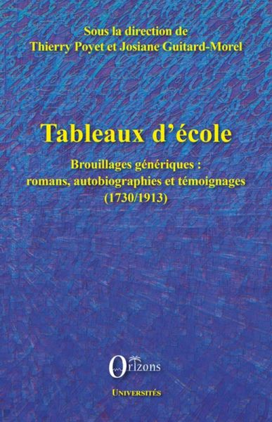 Souvenirs personnels, opinions polemiques, debats theoriques : l'ecole est au carrefour de toutes les reactions. Or, la litterature s'est toujours emparee de cet univers si singulier. Elle permet aussi de reveler un brouillage generique sans precedent entre romans, autobiographies et temoignages. Les Tableaux d'ecole que proposent Rousseau, Retif de la Bretonne, Chateaubriand, Balzac, Flaubert, Valles ou Alain-Fournier etc., constituent un theme privilegie pour dire l'Homme.